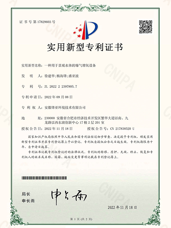 一種用于景觀水體的曝氣增氧設備