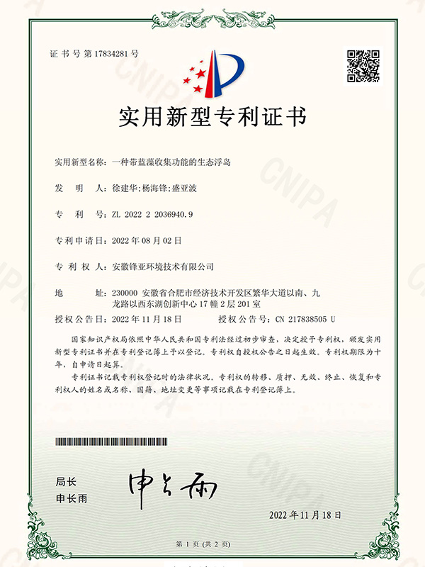 一種帶藍藻收集功能的生態浮島